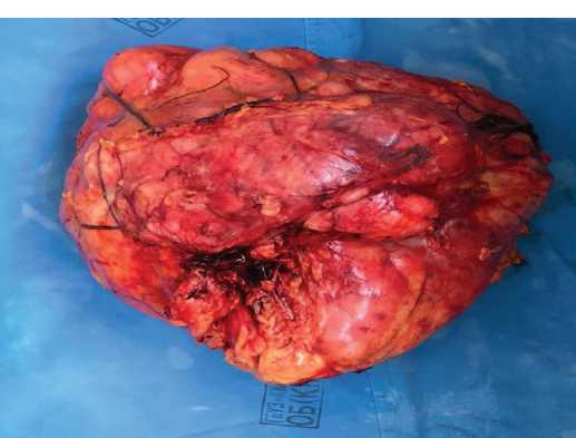 Представленный случай иллюстрирует возможность успешного удаления гигантской опухоли. Особое значение при лечении имеет радикальное хирургическое удаление с широкими краями резекциями, что позволяет достичь благоприятных непосредственных результатов, а также снижает риски рецидивов, улучшает продолжительность и качество жизни больных [8, 9].