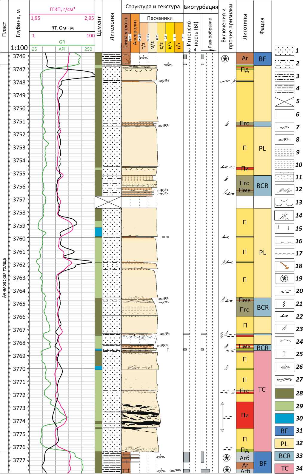 Рис. 1. Седиментологическая колонка ачимовской толщи севера Западной Сибири