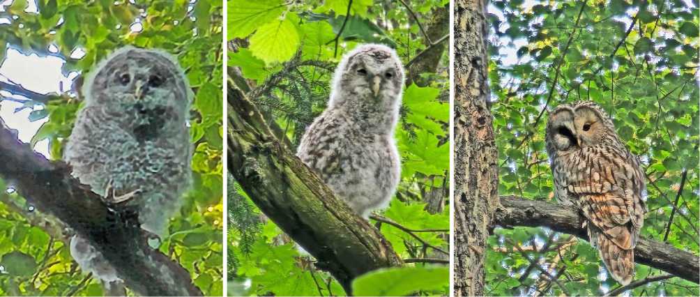 Рис. 3 (в центре). Птенец длиннохвостой неясыти Strix uralensis . 31.05.2025.