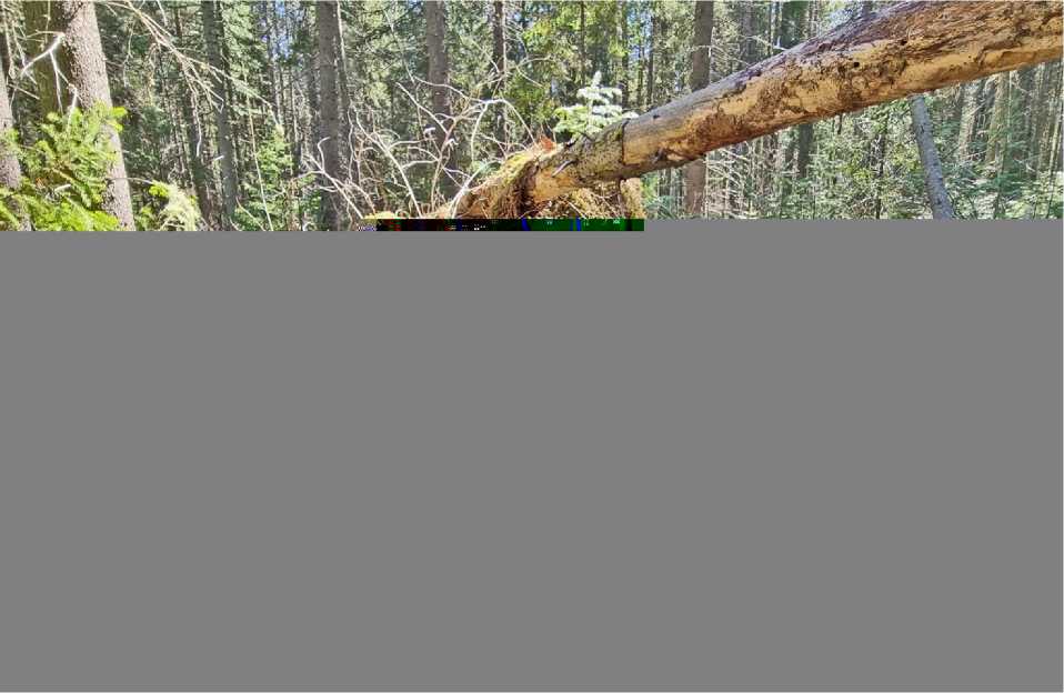 Рис. 4. Выворотень, под которым располагалось гнездо крапивника Troglodytes troglodytes . Городские леса Ханты-Мансийска. 11.05.2025. Фото автора