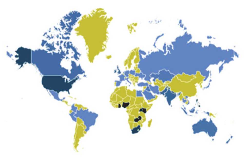 Рисунок 4. Ареал популярности поисковых запросов по словосочетанию «school in the hospital» Источник: данные сгенерированы электронным ресурсом Google Trends