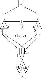 Figure 2. The circuits of a multiplexer and a demultiplexer for two-rail variables of an electronic or magnetic nature and supplied to a guide layer, which specifies two propagation directions for the information signal received at its optical input. As a result, the input optical signal is sent to one of the two optical outputs.