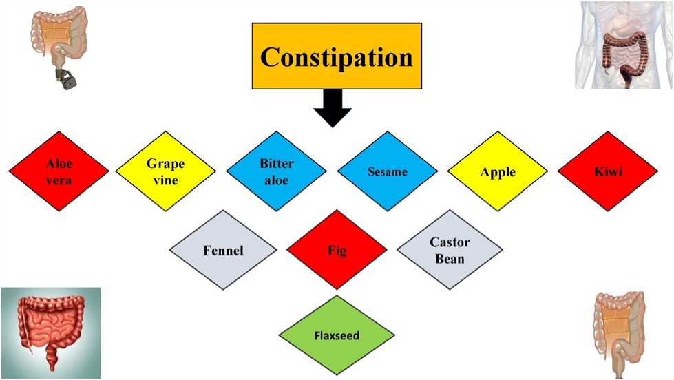The pulp extracts from Eugenia dysenterica fruits can be suggested for more research on novel biotechnological pharmaceutics with laxative characteristics for application in irritable bowel syndrome treatment and chronic constipation (Lima et al., 2010). Shouhui Tongbian Capsule (SHTB) is composed of different medicinal plants such Aloe, Polygoni multiflori Radix, Ginseng Radix et Rhizoma, Cassiae Semen, Asini Corii Colla, Lycii Fructus, Atractylodis Macrocephalae Rhizoma, and Aurantii Fructus Immaturus which is useful in treatment of constipation, and its different types of mechanisms are promote secretion of intestinal fluid, promote gastrointestinal motility, regulation of qi activity, regulate blood glucose, enhance every metabolism, immunoregulation, regulate gastrointestinal hormones, and regulate gastrointestinal hormones (Gong et al., 2024). Dahuang-Gancao decoction (DGD) is an important formula in traditional Chinese medicine which showed higher purgative impact in constipation through reduced first detection time, and the significantly increased fecal excretion (Chen et al., 2019). Cassia senna is a distinguished medicine for different diseases, particularly constipation which is also rich in anthraquinone glycosides such as Sennosides that maybe appropriate for treatment and prevention of constipation. A new pectin (ALP-2) was derived from the roots of Arctium lappa L. which could enhance intestinal peristalsis, and decrease constipation in mice (Li et al., 2019). The Chinese herbal medicine, MaZiRenWan (MZRW) has been used for treatment of constipation for more than 2000 years which can reduce the severity of constipation, and enhances colonic transit (Zhong et al., 2019). The aqueous extract of Malva sylvestris is safe and effective for the treatment of functional constipation in adult patients. Jiang et al. (2020) reported that Durio zibethinus Murr rind polysaccharide can be used for treatment of constipation, and it could improve gut hormones related to the intestinal peristalsis. It is also shown that the total glucosides of paeony (TGP) could be used for treatment of intestinal inflammation and constipation in mice by acting on some inflammatory factors, and intestinal motility related parameters (Liu et al., 2020).