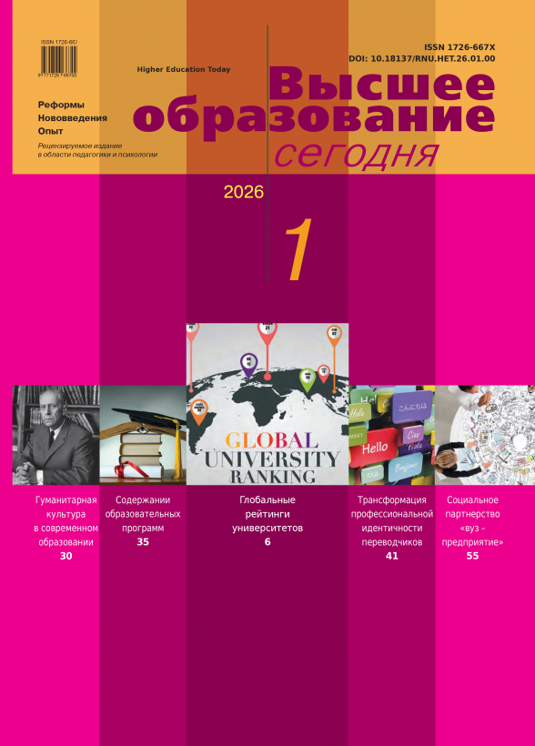 Содержание выпуска 1, 2026 Высшее образование сегодня