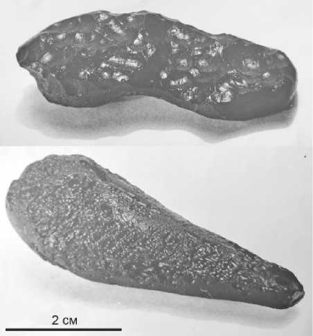 Рис. 1. Образцы тектитов: ТК1 (верхний) и ТК2 (нижний)
