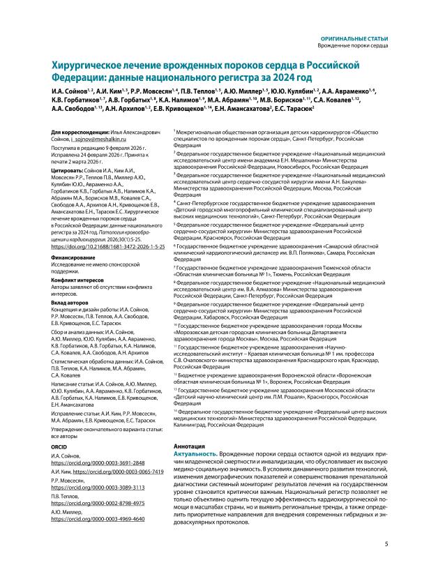 Хирургическое лечение врожденных пороков сердца в Российской Федерации: данные национального регистра за 2024 год