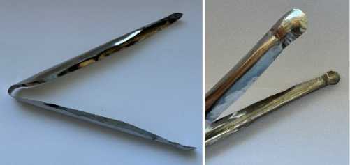 Для исключения раздавливания ОЩЖ при их выделении применяли одноразовый пинцет для работы с паренхиматозными органами (патент на полезную модель RU 197746 U1) (рис. 1).