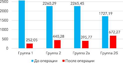 Рисунок 3. Уровень иПТГ в пг/мл до и после операций в группах исследования