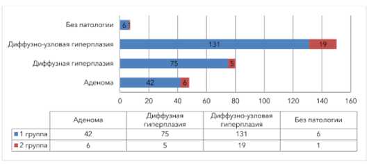 Морфология щитовидной железы. При патомор-фологическом исследовании удаленных ЩЖ у пациентов группы 1 выявлены: