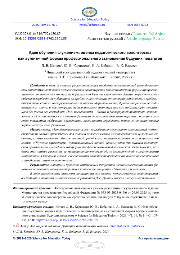 Идея обучения служением: оценка педагогического волонтерства как аутентичной формы профессионального становления будущих педагогов