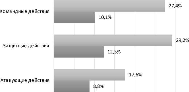 Сравнительный анализ подтверждает, что у спортсменов экспериментальной группы прирост показателей был значительно выше, чем у контрольной. В то время как в контрольной группе отмечалось улучшение лишь в отдельных технических тестах, использование методики игрового моделирования обеспечило не только рост технической точности, но и значительное усиление тактической составляющей (рис.2).