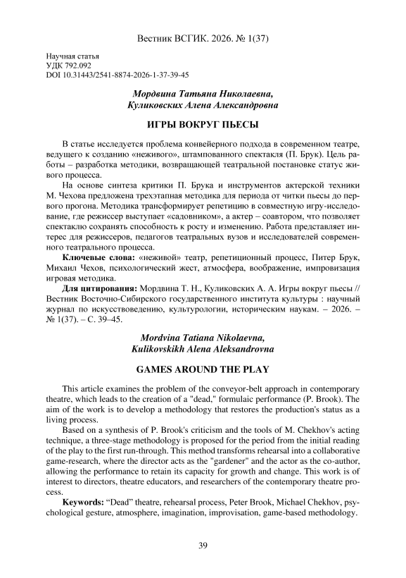 IDR: 170211726 | УДК: 792.092 | DOI: 10.31443/2541-8874-2026-1-37-39-45