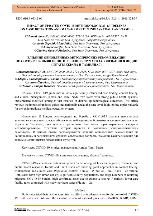 Текст научной статьи Impact of Updated COVID-19 Methodological Guidelines on Case Detection and Management in India (Kerala and Tamil)