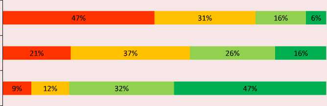 The innovative gene is almost proportionately present in all quartile groups in terms of the quality of life (Fig. 2). In the analyzed sample of regions, the share of regions with a strong innovative gene is highest in the second quartile group in terms of quality of life (37%) – the Republic of Mordovia, the Vologda Region, the Tver Region, etc. The quality of life in this group is higher than in the production group, but due to the low quality of institutions, it lags behind the leading regions.