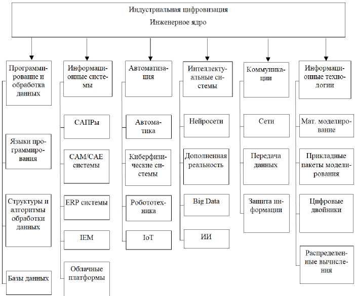 Рисунок 1. Цифровое инженерное ядро, структурированное по областям знаний и направлениям цифровизации
