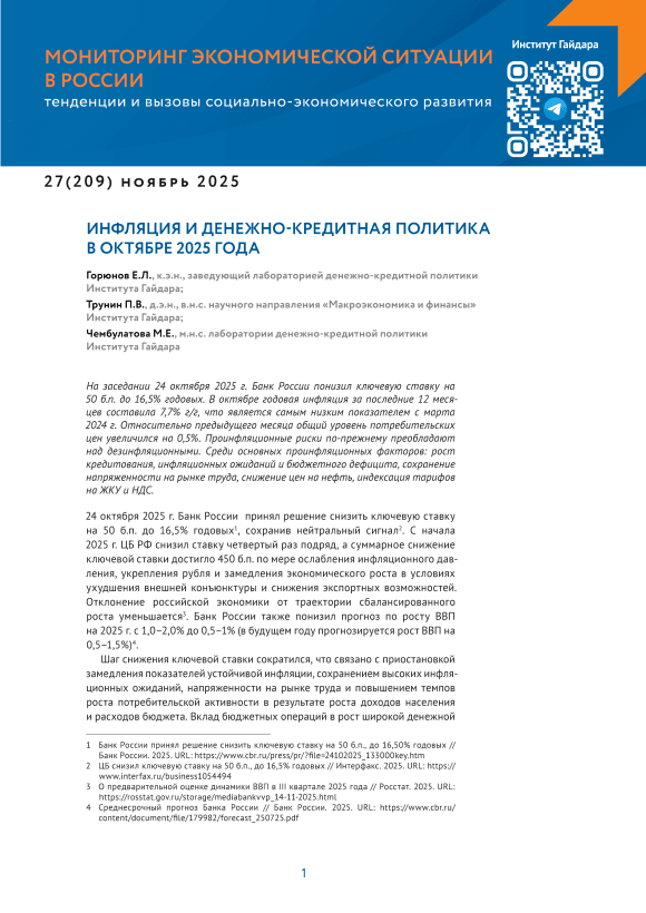 Текст научной статьи Инфляция и денежно-кредитная политика в октябре 2025 года