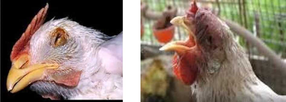 Course and clinical signs. The disease affects birds aged 1–8 months and is more acute in young birds aged 120–150 days. The disease manifests itself in very acute, acute, subacute, and chronic forms, including laryngitis, tracheitis, and conjunctivitis. The incubation period of the disease is 2– 30 days, depending on the virulence and dose of the virus, as well as the general resistance of birds. Depending on the course of the disease, acute, subacute, and chronic forms are distinguished, and depending on the localization of the pathological process, laryngotracheal and conjunctival forms (Figure 2).