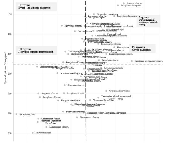 Рисунок 3. Типоло г ия регионов п о качеству континг е нт а (аби т уриентов) и обр а зо в атель н ой систе мы