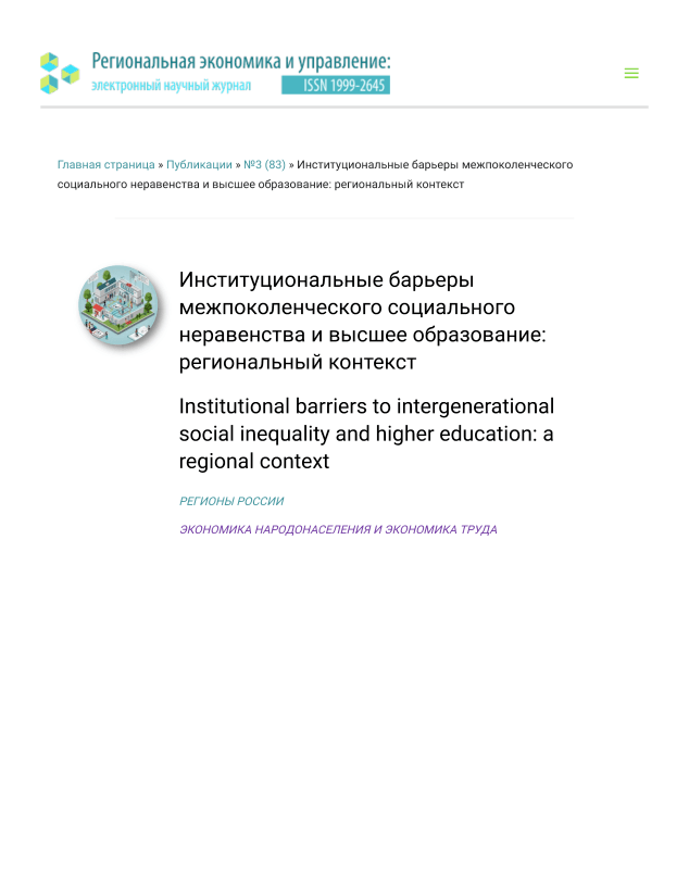 Институциональные барьеры межпоколенческого социального неравенства и высшее образование: региональный контекст