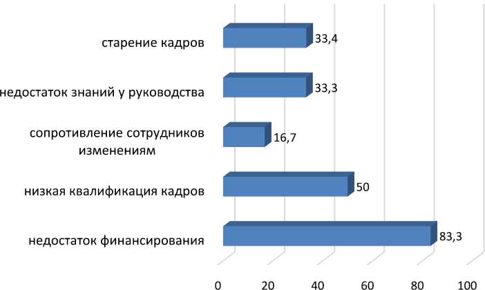 «Какие барьеры мешают вашему учреждению адаптироваться к современным тенденциям (выбрать до 3-х вариантов ответа)», в %