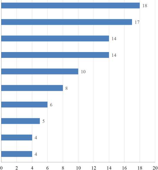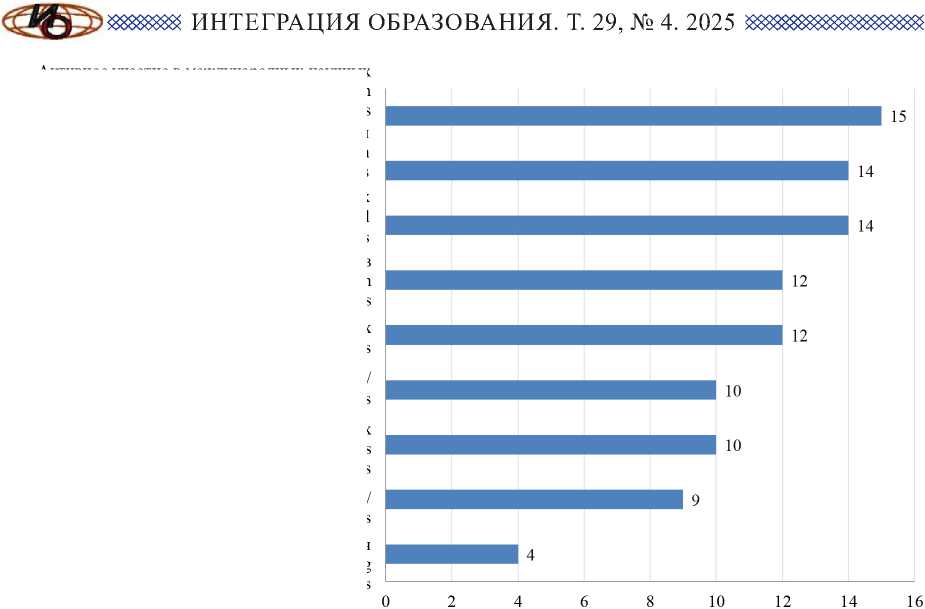 F i g. 3. Effective measures for integrating technology and science: teachers’ perspectives, % целей реформ и активное участие в их реализации, хотя международное сотрудничество остается скорее вспомогательным направлением. Особое внимание уделяется цифровым технологиям, междисциплинарным подходам и инновационным форматам обучения. Развитие исследовательской инфраструктуры и разнообразие источников финансирования подтверждают потенциал устойчивой трансформации системы, особенно на уровне региональных университетов, где укрепляется баланс между научной, образовательной и идеологической функциями.