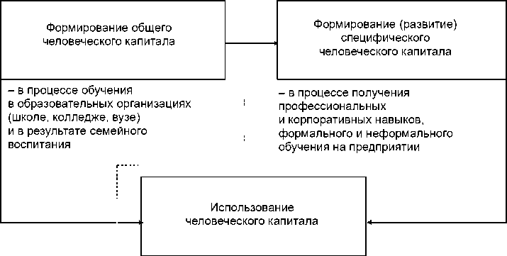 Общий человеческий капитал формируется в процессе обучения в образовательных организациях, воспитания в семье, как правило, еще в детском и юношеском возрасте (Deming, 2022). Стадия формирования специфического человеческого капитала называется также стадией развития.