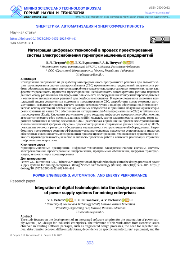 IDR: 140313245 | УДК: 622:621.311 | DOI: 10.17073/2500-0632-2025-09-461