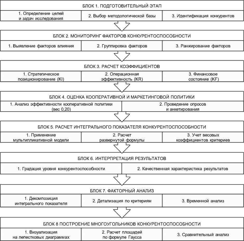Рис. 1. Блок-схема интегрального подхода к оценке уровня конкурентоспособности организаций потребительской кооперации2