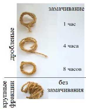 Замачивание сырья в дробленом виде проводили в дистиллированной воде на 1, 4 и 8 часов при температуре 20 оС. Эффективность многочасового замачивания оценивали по цветовой гамме полученных окрашенных образцов шерстяной пряжи.