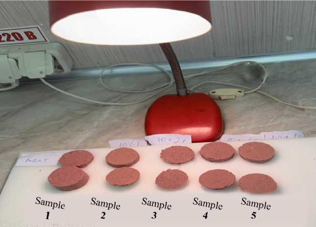 Figure 1. Samples of experimental cooked sausages during light exposure
