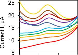 Next, a series of voltammograms was made on a bipotentiostat-bigalvanostat using square wave ( SW ) and differential pulse ( DP ) voltammetry methods with increasing phenol concentration from 0.1 μM to 1 mM. The operating characteristics of the methods were optimized: for SW – wave frequency 40 Hz, wave amplitude 50 mV, scanning speed 50 mV/s, for DP – wave amplitude 80 mV and wave time 40 ms, total pulse time 200 ms, scanning speed 50 mV/s.