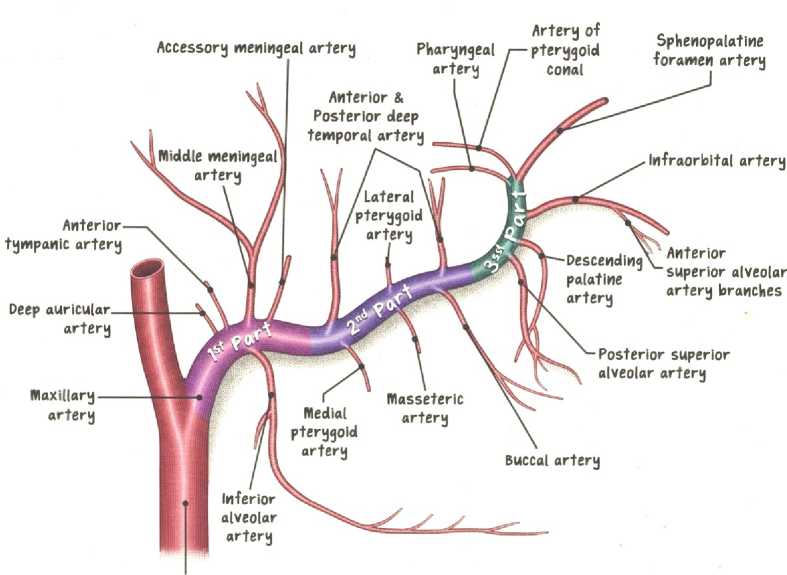 АНАТОМИЧЕСКАЯ ОСНОВА: ВАРИАБЕЛЬНОСТЬ ВЕРХНЕЧЕЛЮСТНОЙ АРТЕРИИ