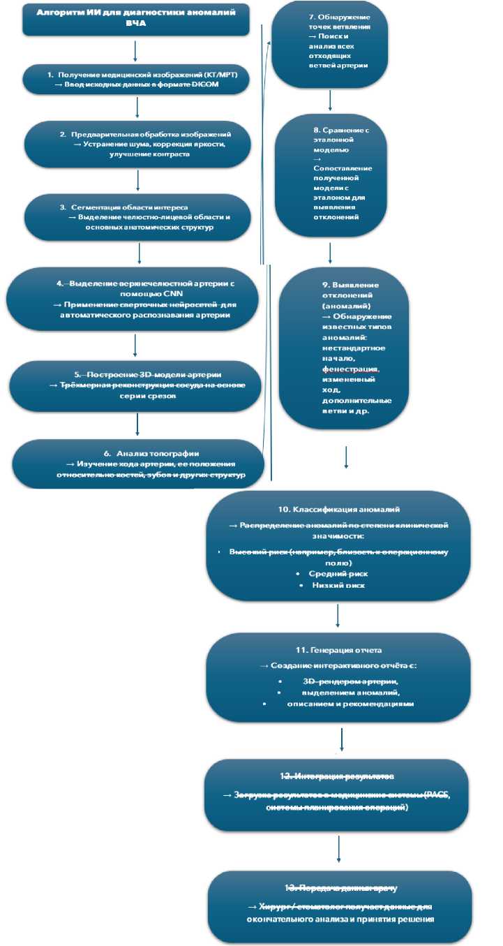 Рисунок 2. Алгоритм ИИ для диагностики аномалий верхнечелюстной артерии Figure 2. An AI algorithm for diagnosing maxillary artery abnormalities