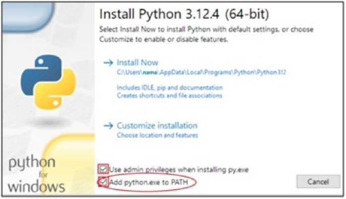 Загружаем инсталлятор Python 3.12.4 с сайта Важно: на сегодняшний день остальные библиотеки корректно устанавливаются только с версией Python не выше 3.12; современным читателям необходимо скачать не последнюю версию, а именно Python 3.12. Запускаем инсталлятор. В открывшемся окне установщика Install Python внизу необходимо отметить обе опции «Use admin privileges when installing » и «Add to PATH». Это позволит добавить путь к установленному Python в системную переменную PATH и завершить процесс установки программы. Нажимаем кнопку Install Now. В окне Setup was successful нажимаем кнопку Close.