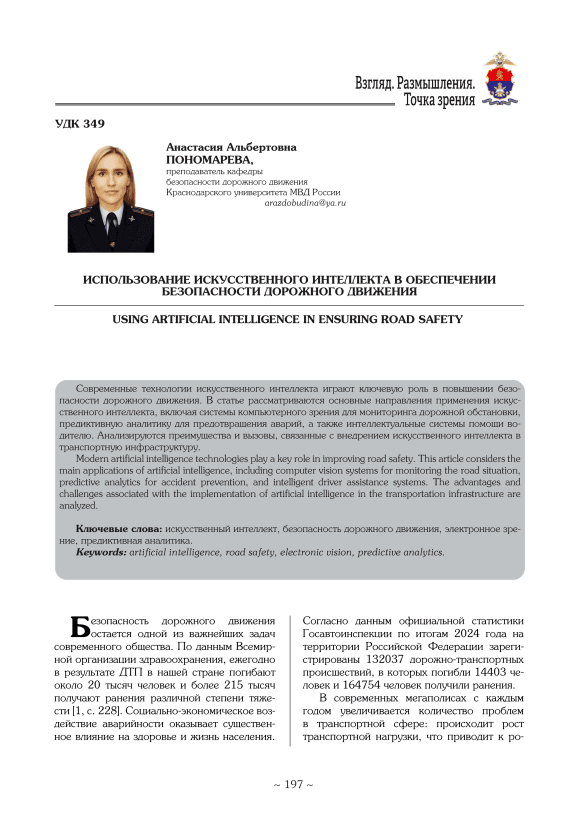 Текст научной статьи Использование искусственного интеллекта в обеспечении безопасности дорожного движения