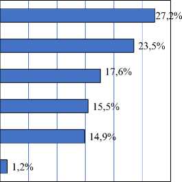 Эмпирическое исследование. Соотношение с результатами иных исследований в области ИИ. Чаще всего респонденты использовали нейросети для генерации текстовых/аналитических отчетов (27,8%), сбора и структурирования данных (23,2%), анализа больших массивов информации (19%), подготовки проектов решений (15,2%), прогнозирования трен-дов/рисков (9,9%). Указанные данные кореллируют с описанными выше направлениями использования ИИ в уголовном судопроизводстве и свидетельствуют о компетентности опрошенных специалистов.
