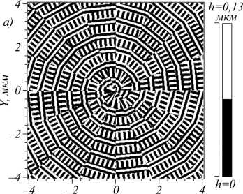 Рис. 1. Рельеф металинзы, рассчитанной на детектирование топологического заряда m = –0,5 для длины волны света λ = 0,633 мкм