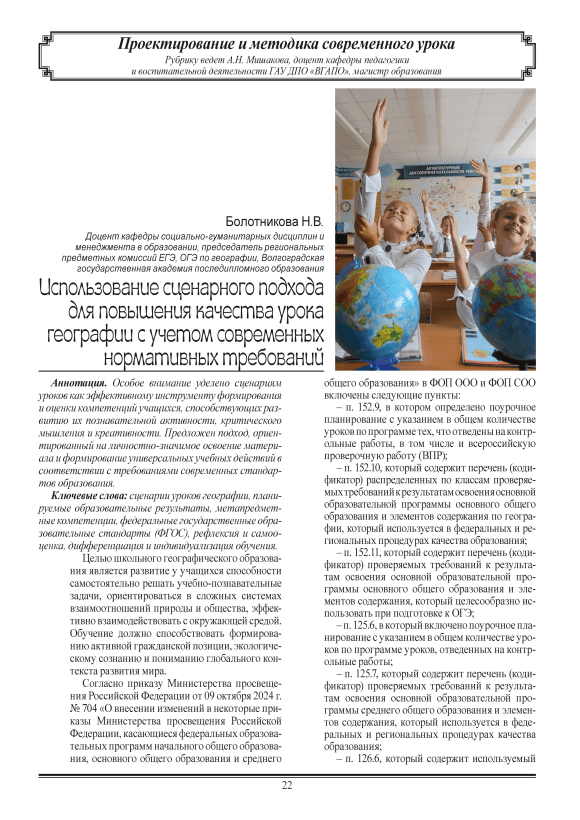 Текст научной статьи Использование сценарного подхода для повышения качества урока географии с учетом современных нормативных требований