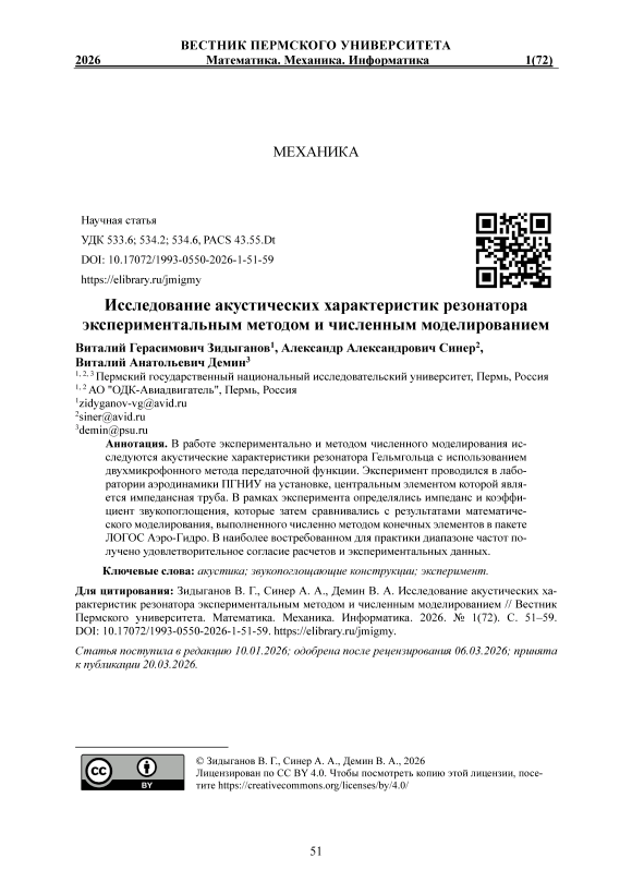 IDR: 147253752 | УДК: 533.6; 534.2; 534.6, PACS 43.55.Dt | DOI: 10.17072/1993-0550-2026-1-51-59