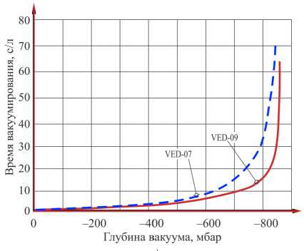 Анализ экспериментальных данных показывает, что характер кривых и время вакуумирования мерной емкости для эжекторов серии VED схожи с кривыми, приведенными в каталоге фирмы-изготовителя.