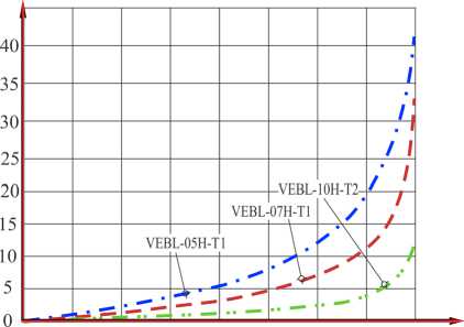 На рис. 4 приведены диаграммы зависимости времени вакуумирования мерной емкости для эжекторов серии VEBL, полученные авторами (слева) и приведенные в каталоге изготовителя (справа). А в таблице 2 представлены значения питающего давления, при котором авторы получили наилучшие (оптимальные) значения глубины вакуума. Также здесь указаны рекомендуемые производителями значения оптимального питающего давления и ожидаемые значения глубины вакуума при этих значениях.