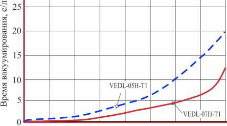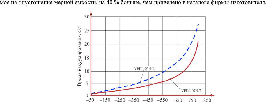 Судя по диаграммам и данным таблицы, характер кривых и время вакуумирования мерной емкости для эжекторов серии VEDL схожи с данными, приведенными в каталоге фирмы-изготовителя.
