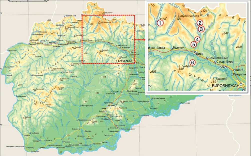 Рис. 1. Картосхема локализации точек сбора материала