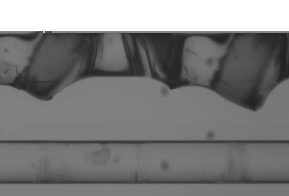 Анализ поверхности ОВ оптическим микроскопом после удаления ЗУП показал, что при всех трех исследуемых способах снятия покрытия покрытие удалялось не полностью. На поверхности ОВ оставались остатки ЗУП (рисунки 2–4), которые удалялись путем протирки поверхности ОВ безворсовой салфеткой, смоченной спиртом. Оценка растягивающей нагрузки на ОВ при его протирке, выполненная с применением датчика разрывной машины, показала, что на волокно при протирке воздействуют растягивающие нагрузки в пределах от 0,2 до 0,6 Н.