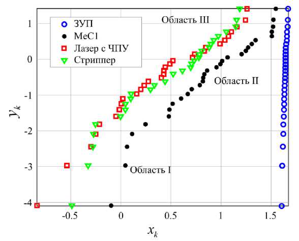 – для метода удаления ЗУП лазером на установке с ЧПУ данная область соответствует разрушающим напряжениям от 0,43 до 0,81 ГПа;
