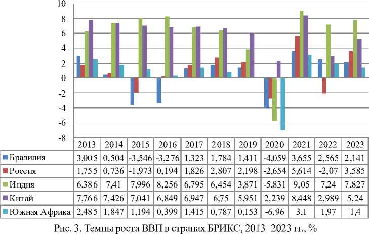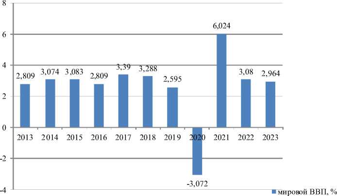 Рис. 1. Темпы роста ВВП мировой экономики, 2013–2023 гг., %, Fig. 1. Global economic GDP growth rate, 2013–2023, %