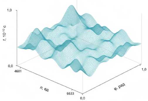 Рис. 4. Вероятность возникновения дополнительных зон ОС, возникающих при торсионном воздействии на участок гена ATXN 2 при k = 45; λ = 1,1