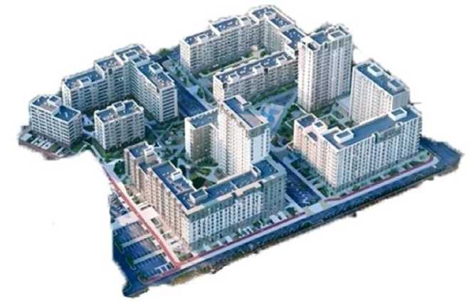 Объектом исследования был выбран строящийся жилой комплекс с учётом окружающей застройки. Предметом исследования являлся ветровой режим территории жилого комплекса. Трёхмерная визуализация строящегося жилого комплекса представлена на рис. 1.