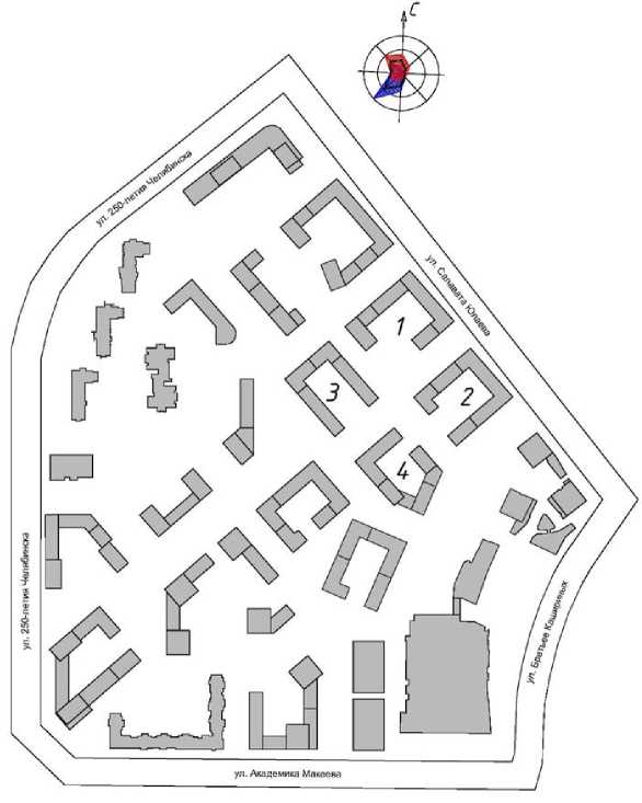 2) дворовые территории хорошо защищены от ветра, что обеспечивает комфорт жителям в зимний период года, когда повышенные скорости ветра оказывают наиболее негативное влияние на качество жизни;