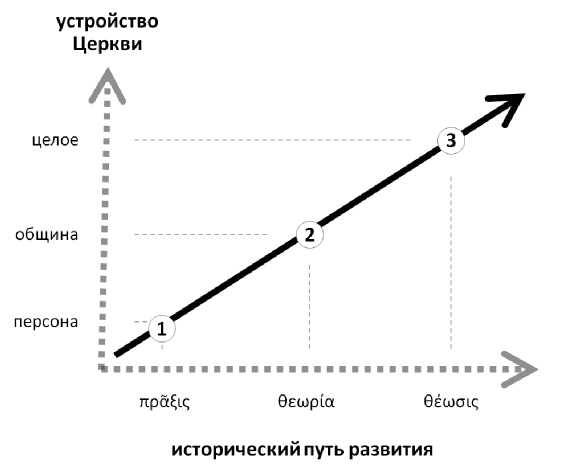 За таким положением дел стоит типологическое родство пути и структуры Церкви, которое полагает некие пределы историческому развитию в самой структуре Церкви. Более детальный разбор этой темы восходит к проблематике троического образа Откровения Бога человеку в истории, но эта тема выходит далеко за пределы настоящей статьи и, полагаем, ещё ждёт своего более детального обсуждения и исследования.